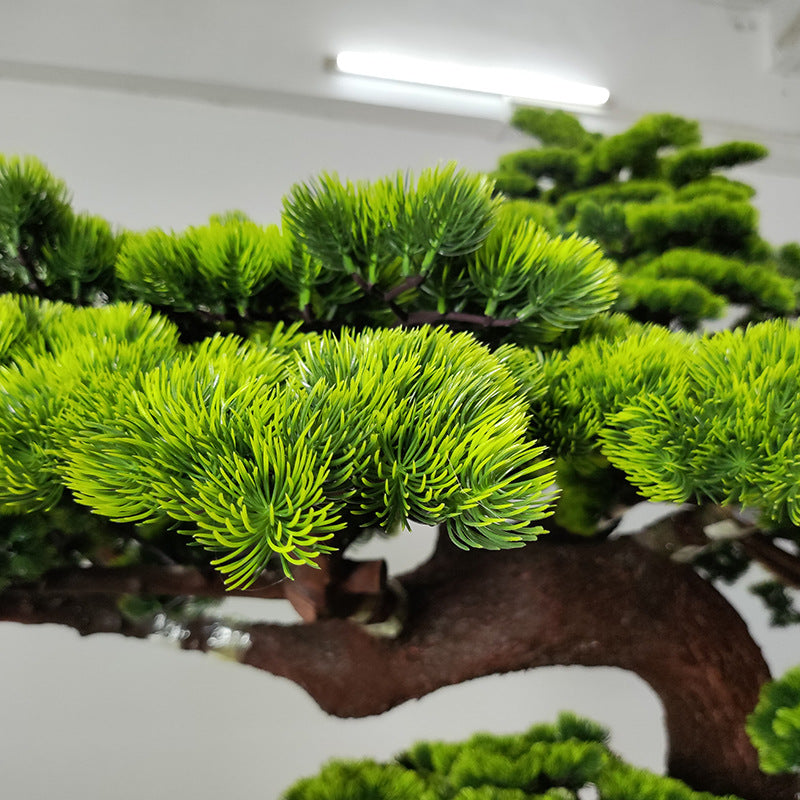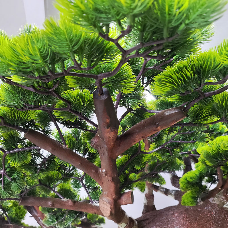 Transform any space with this stunning Simulated Green Pine Plant, a lifelike faux bonsai that effortlessly blends into both indoor and outdoor environments. Standing tall with remarkable detail, the natural wood trunk and vibrant foliage provide a sophisticated touch to your décor. Perfect for hotels, restaurants, and upscale properties, this elegant plant serves as a warm welcome for guests while requiring zero maintenance. Visualize it enhancing your entryway, office, or dining area with its striking presence, creating an inviting atmosphere that evokes nature's tranquility.