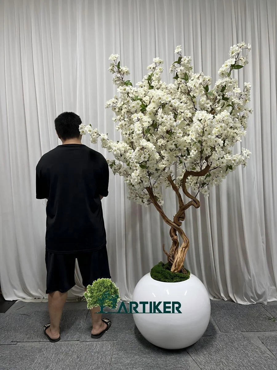 Custom Artificial Pink White Cherry Blossom Tree Fake White Sakura Bonsai Flower Tree Outdoor Indoor Hotel Decor Wood Parties
