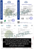 Certificate: CE; RoHS; Fireproof certificate; UVproof certificate