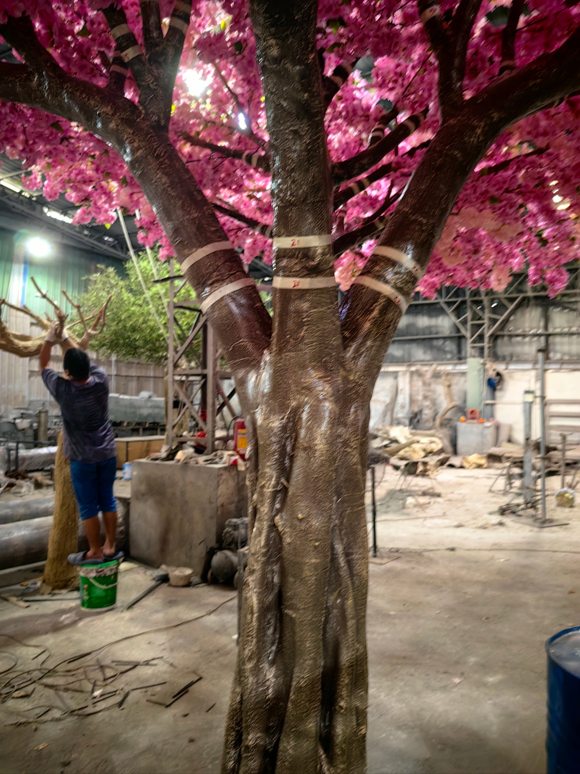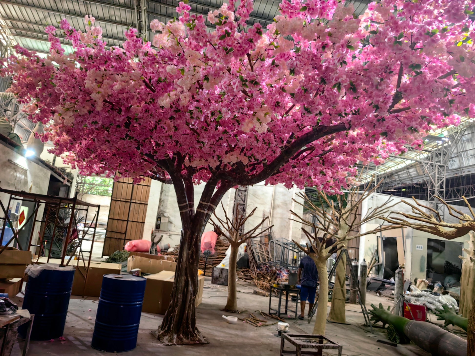 Bring the beauty of spring indoors with this large, handcrafted faux cherry blossom tree. Standing 5 meters tall with a 10-meter wide canopy, it makes a stunning centerpiece for restaurants, hotels, or photo spots. Made with a durable fiberglass trunk, it combines stability with elegant aesthetics. The lifelike blossoms and intricate details create a realistic, eye-catching display. Perfect for enhancing social media content, events, and indoor garden-themed décor.